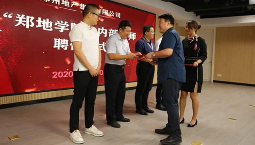 9月10日,在我國的第36個教師節來臨之際,鄭地學院首屆內部講師受聘儀式正式啟動。黨委委員、總經理助理馮洪濤、黨委委員張華、特邀評委鄭州商都控股集團有限公司董事長牛曉亮及集團戰略投資部部長呂延輝出席了本次儀式。