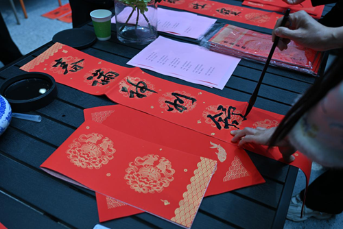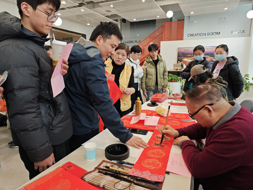 活動當天,鄭州市文聯的書法家們受邀來到現場。他們個個精神飽滿,手執毛筆,在一張張紅紙上揮灑自如,書寫著寓意深遠的新年序言。這些序言既是對過去一年的總結,也是對新年的美好期許。書法家們的精彩表演贏得了現場觀眾的連連稱贊,租戶們紛紛表示:“書法家們寫的字真是太好了!‘福’字看著就喜慶,春聯的寓意也都非常美好。”