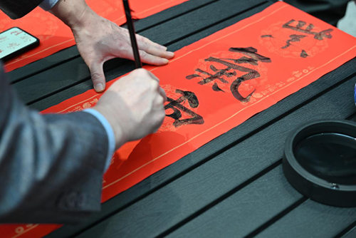 壓紙、蘸墨、揮筆、走字……在鼎盛美寓和開元美寓的共享空間里,書法家們揮毫潑墨、筆走龍蛇,一個個寓意吉祥的“福”字、一副副飽含美好祝福的春聯紛紛呈現在大家眼前,為即將到來的蛇年春節增添了濃濃的喜慶氛圍。