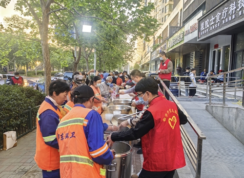4月24日凌晨5點,晨曦微露,在鄭州市金水區東風路愛心粥屋,來自鄭州城發集團的50多名志愿者,大家身穿“紅馬甲”,早早來到這里,開展愛心志愿活動。
