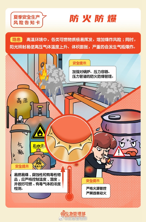 高溫天氣下安全生產工作要關注哪些風險隱患?如何防范?這組風險告知卡請查收↓↓↓