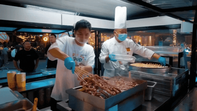 在夜市兩旁,章魚燒、特色酥肉、撈汁小海鮮、小龍蝦……十余家風味小吃店一字排開,琳瑯滿目,吸引了不少消費者駐足品嘗。