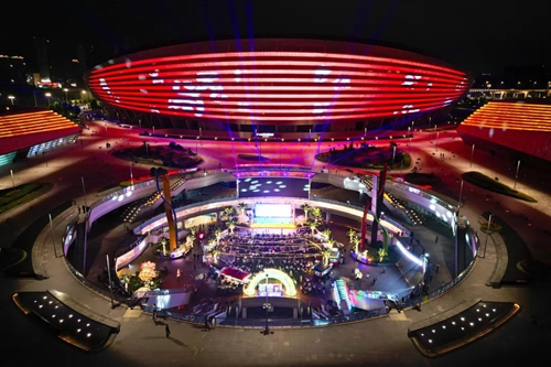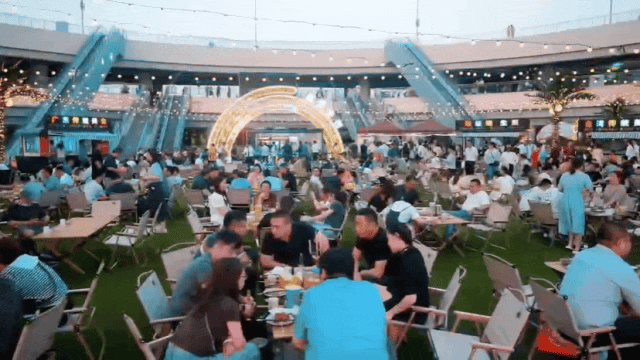 熠熠星光耀向夜空,呼應著霓虹閃爍的奧體中心,飄散的煙火氣和美食的香氣充斥著整個下沉空間,舞臺音樂節奏歡快、火爆酷炫,在霓虹交錯的空間里,一天的時間仿佛被夜市拉長,這是年輕人帶給這座城市的無限活力。