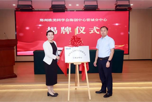 會上,管城區人民政府、鄭州歐美同學會及鄭州城發產城投資集團有限公司三方代表正式簽署了戰略合作協議,與會領導共同為鄭州歐美同學會海創中心管城分中心及青年創新創業基地進行揭牌。