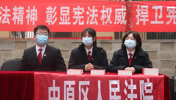 此次宣傳以“尊崇憲法 學習憲法 遵守憲法 維護憲法 運用憲法”為主題,通過懸掛條幅、擺放展架、發放宣傳冊、法律讀本、現場說法等方式,重點宣傳習近平總書記全面依法治國新理念新思想新戰略,黨的十九屆五中全會精神,新中國憲法發展歷程、憲法的地位和作用,憲法的基本原則和主要條款以及民法典、掃黑除惡、防詐騙、防范非法集資等相關內容。