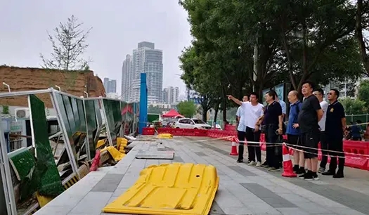 汛情緊急,快速應(yīng)對力保平安。公司黨支部書記、執(zhí)行董事、總經(jīng)理趙佳佳對于防汛工作作出工作部署,工程管理部即時啟動24小時項目值守,扎實做好暴雨防御、隱患排查、雨水倒灌、排水等各項工作,全力保障工程安全。7月22日,公司總經(jīng)理趙佳佳、副總經(jīng)理郭燦帶隊在健康城項目所有標(biāo)段進(jìn)行災(zāi)后安全隱患巡查。