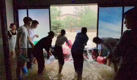為盡快堵住倒灌的洪水大家群策群力,有的員工沖進(jìn)大雨中尋找沙袋堵水;有的員工往高處搶搬辦公設(shè)施或盡量抬高,盡量避免雨水浸泡;有的員工毫不猶豫的將自己的毛毯棉被拿出來去堵水,有的員工立即抄起舀水的工具參加到抗擊水患、保衛(wèi)公司的戰(zhàn)斗中。大家爭先恐后唯恐不能為公司出力,在大門前站不下太多人往外潑水的情況下,身單力小的員工主動一桶一桶從后門往外提水,為我們的公司少受些損失而默默的奉獻(xiàn)著。